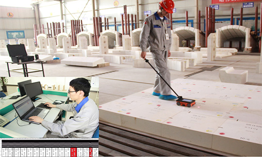 對磚材外觀質(zhì)量的檢驗(yàn)嚴(yán)格的控制,分別在磚材出箱、冷加工及組裝環(huán)節(jié)設(shè)立三個檢驗(yàn)關(guān)卡,每個環(huán)節(jié)層層把關(guān),確保每塊磚材達(dá)到驗(yàn)收標(biāo)準(zhǔn)。